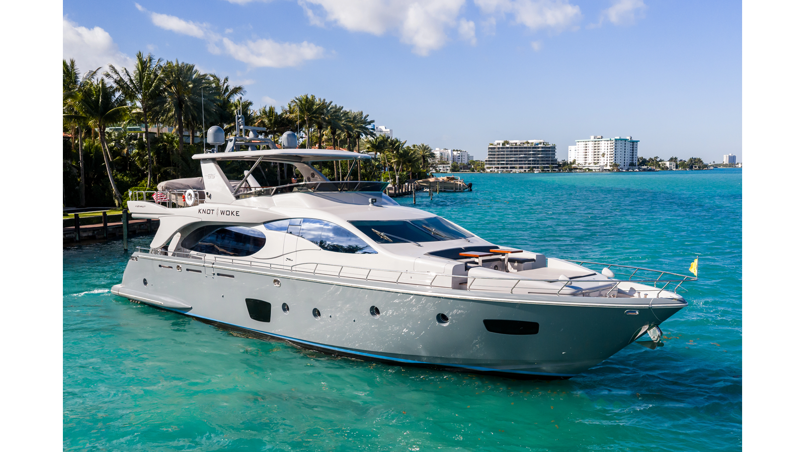 Knot Woke is a 2009 Azimut 85 that has undergone an extensive refit, with over $1M invested to bring her to a fresh, modern standard. During her time in the yard, she received new exterior paint, new teak decking, updated cushions, new salon flooring, as well as new A/C chillers and converters, along with numerous additional upgrades throughout.